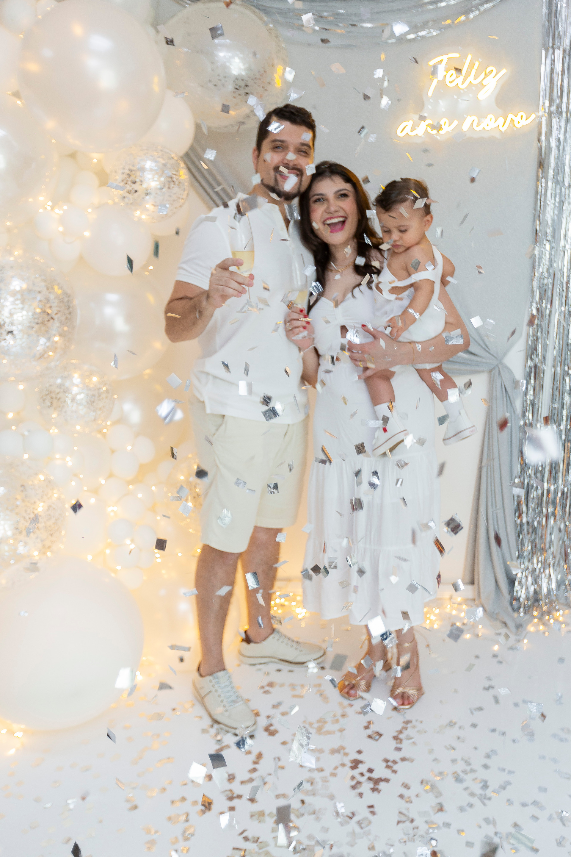 Cenário de ano novo + chuva de papel + Champagne Chandon para brinde (Uma garrafa baby por família)