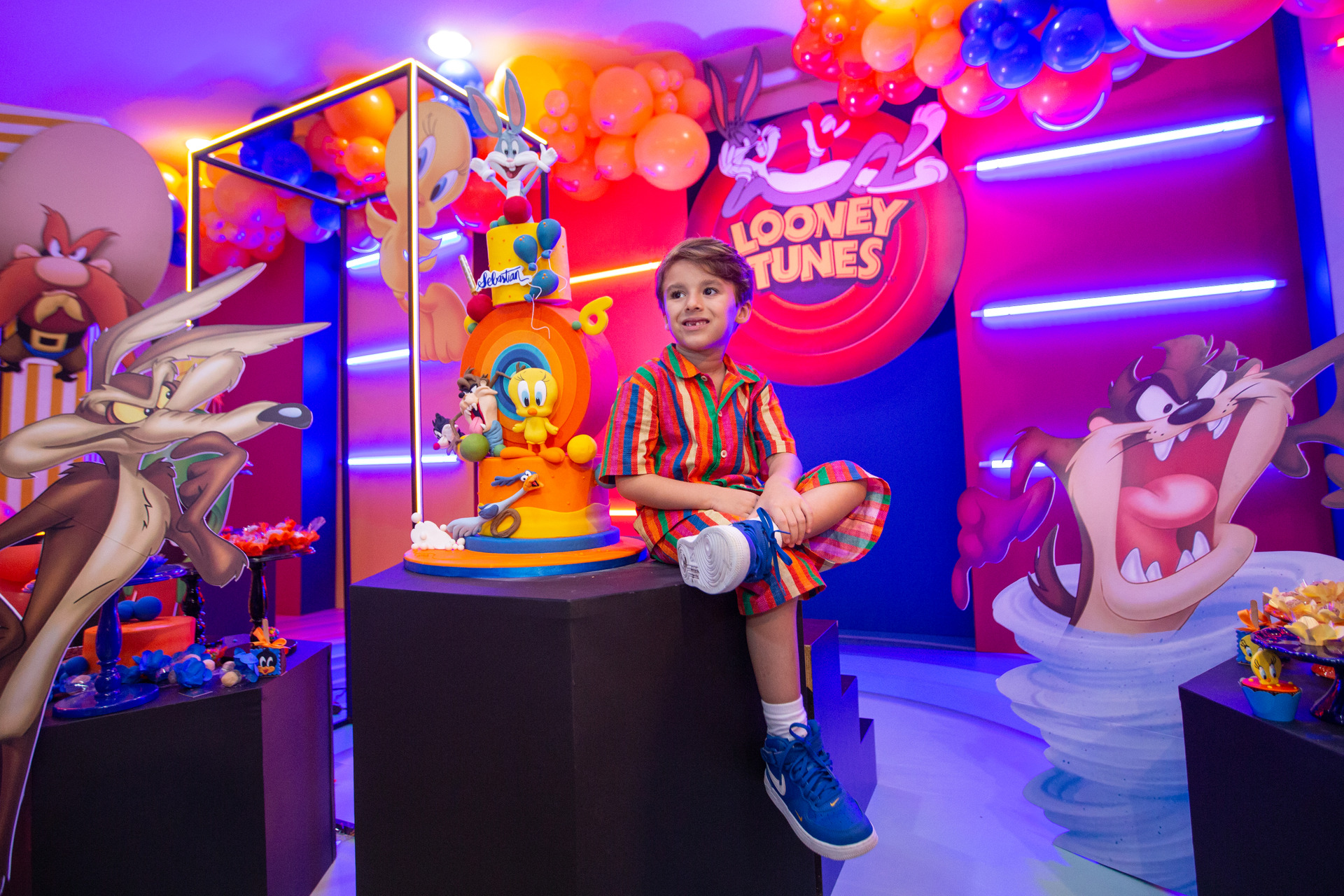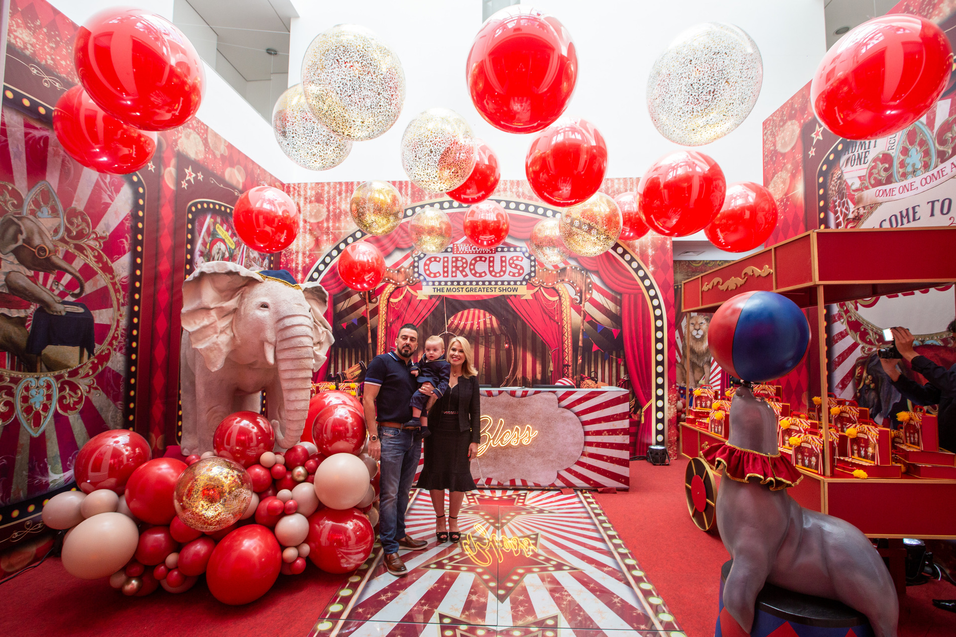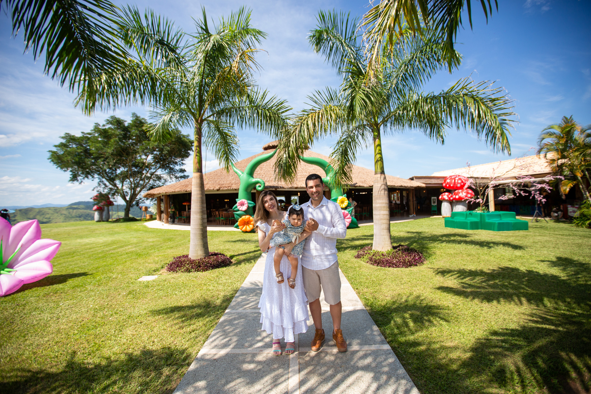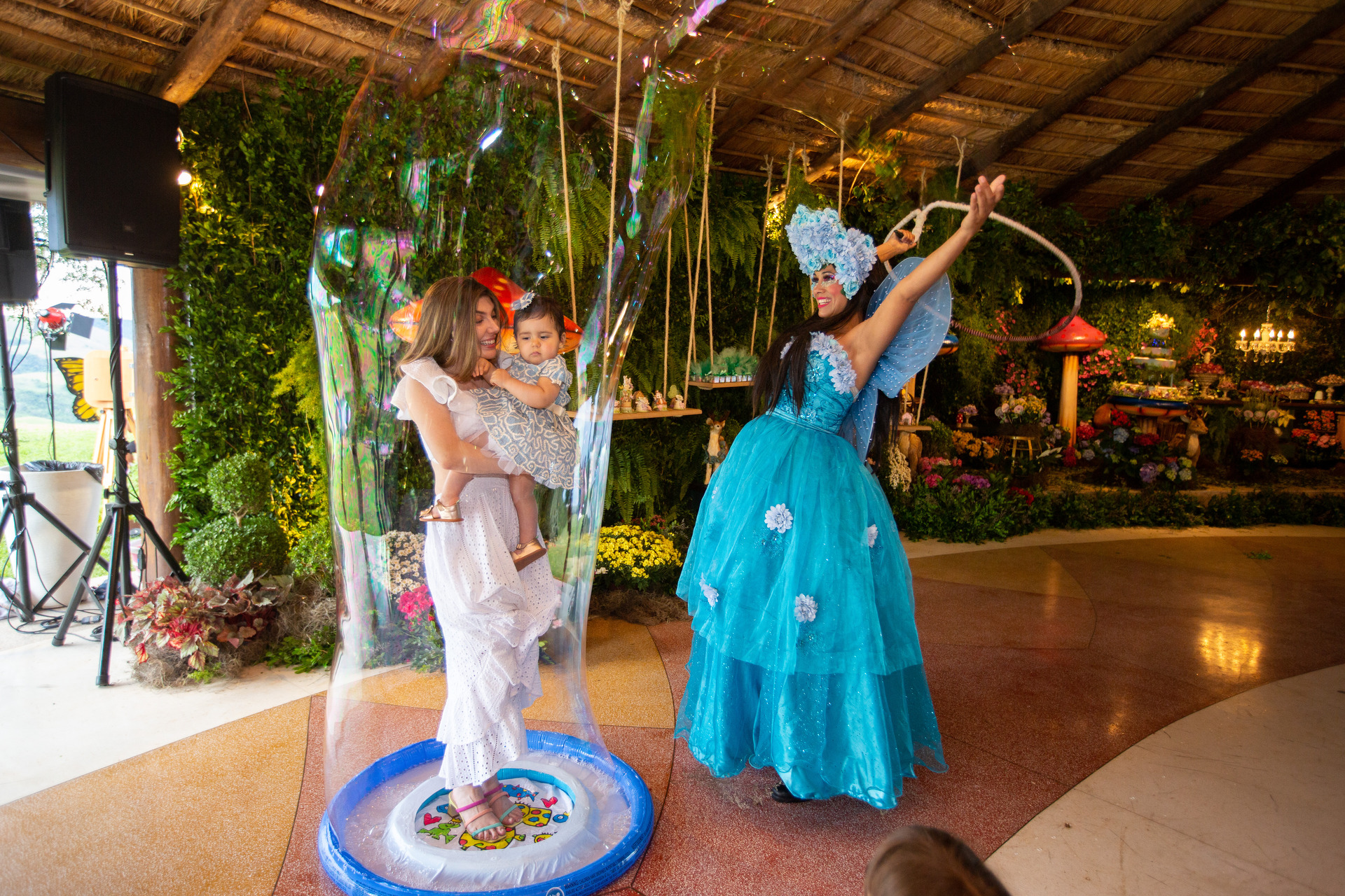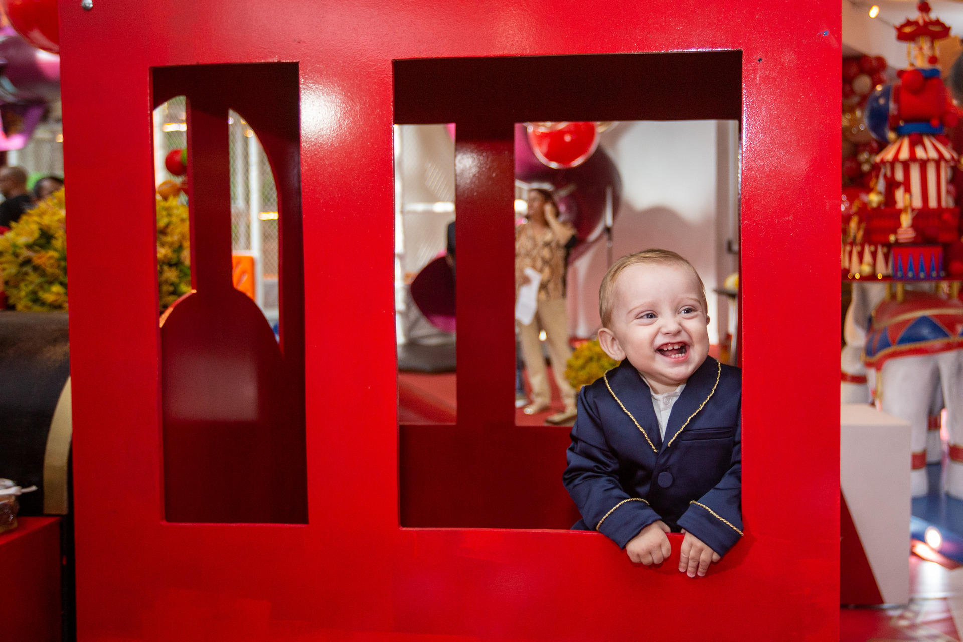 Chegamos 1 hora antes do parabéns, fazemos fotos da decoração da mesa do bolo, fotos do salão porém já com os convidados, depois faremos as fotos protocolares com os pais, familiares e convidados(caso os pais queiram) e em seguida foto do bebê brincando no que tiver de brinquedos no buffet.